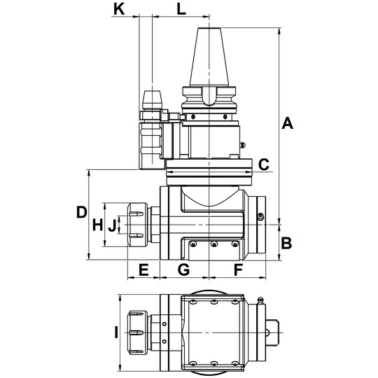 ANGLE HEAD 90 DEGREE AHA TYPE NT50 ER40 L= 80 mm
